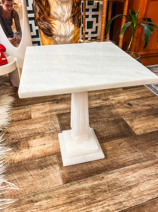 Alabastor Pedestal Side Table with Brass Detail