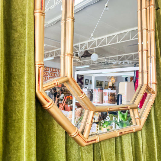 Octagonal Faux Bamboo Wall Mirror – Hollywood Regency Style