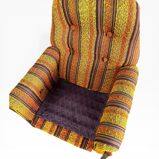 VanderOza Mid-Century Armchair in Original yellow, orange and brown Textured wool Stripe Upholstery