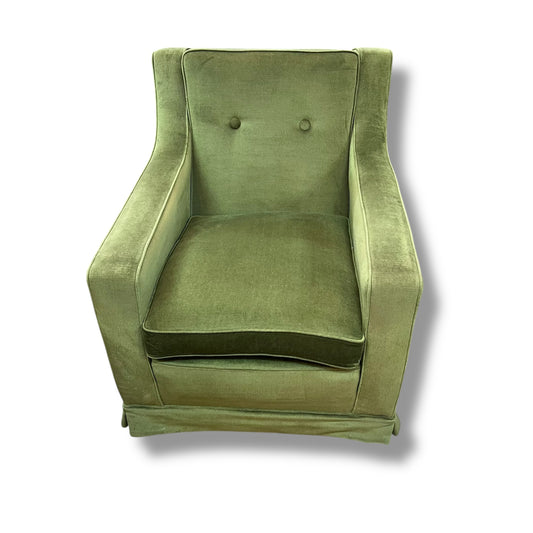 Vintage Designer Lounge Chair — Green Velvet Upholstery, Feather Cushion