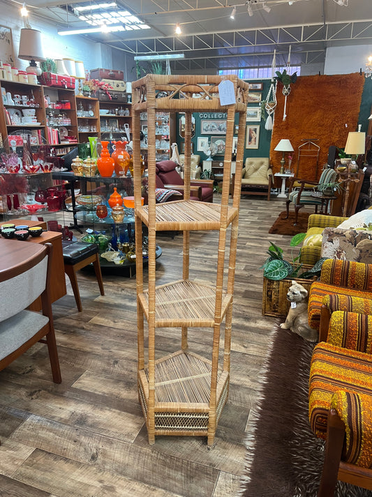 Cane & Rattan Pentagon Corner Shelf – 4 Tier Display Stand