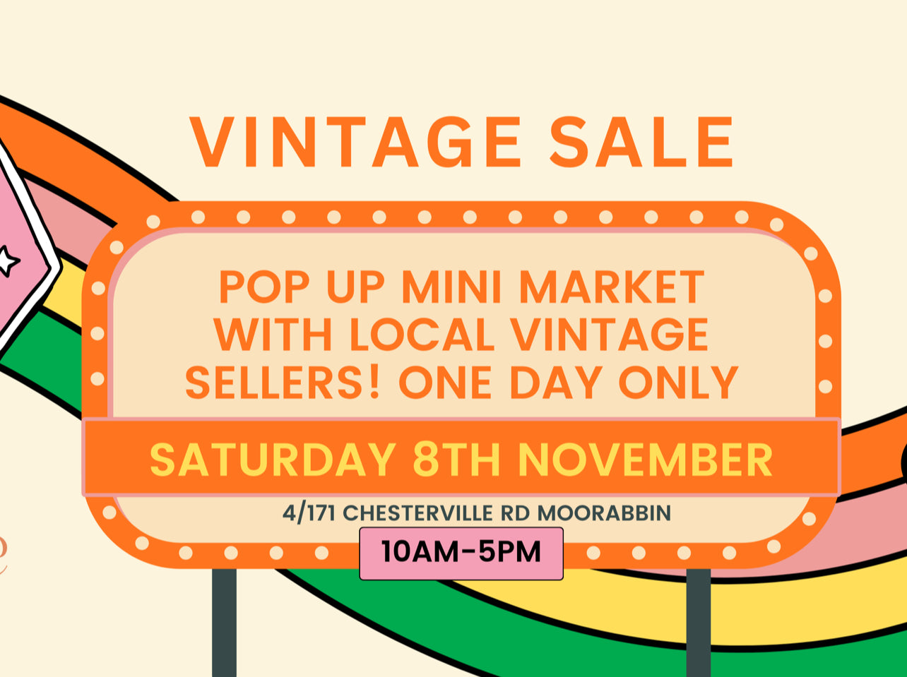 Join us on Saturday 8th November, 10am–5pm at 4/171 Chesterville Road, Moorabbin (next door to Southside Collector) for a one-day-only Pop-Up Mini Market featuring an amazing lineup of local vintage sellers.