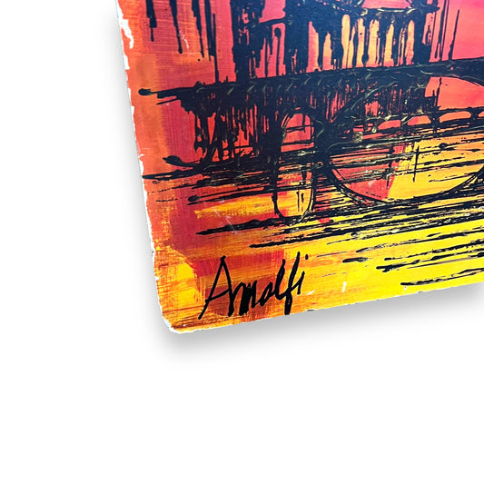 Amalfi yellow, orange and black drip art print unframed