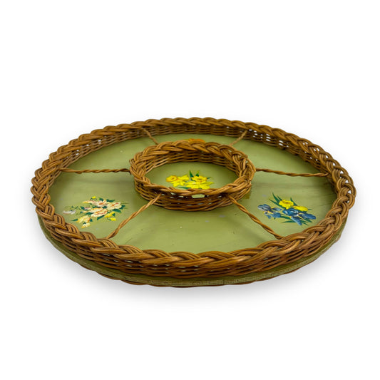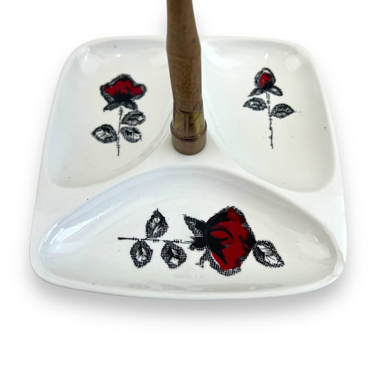 Section plate with Rose artwork and wooden carry handle - made in Japan