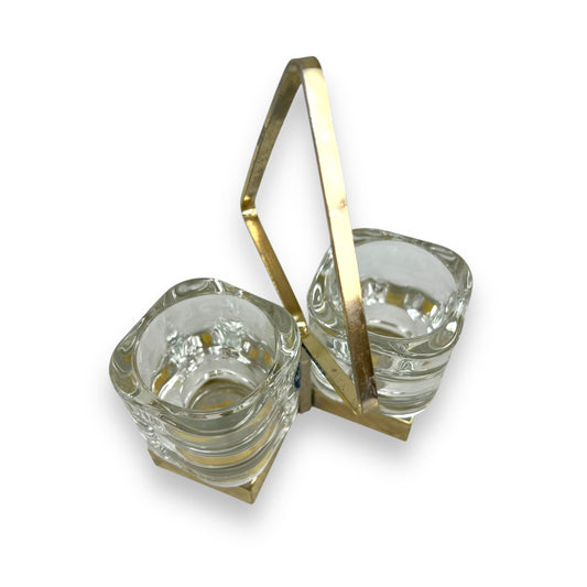 Clear glass Salt & Pepper Holder with Brass Handle - Made in Italy