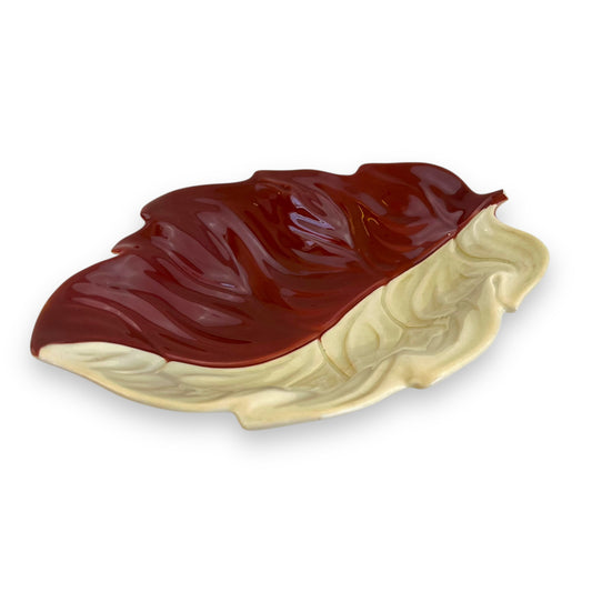 CarltonWare hand painted white and maroon coloured leaf dish - made in England