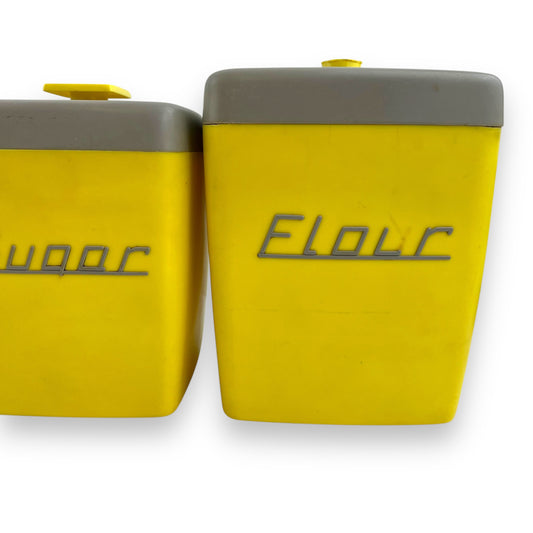 Yellow & Grey 1950s Plastic Nallyware Canister Set of 5 - Coffee, Tea, Rice, Sugar, Flour - Retro Kitchen Storage