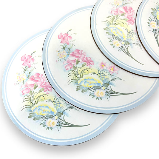 Set of 6 Vintage Floral Placemats - Pastel Flower Design