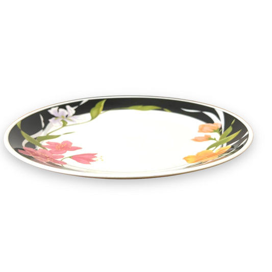 Large Floral Serving Plate with Black Rim | Made in Korea
