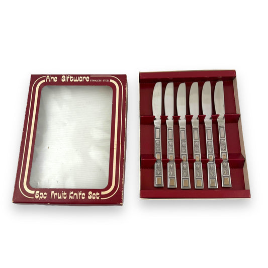 Vintage 6-Piece Stainless Steel Fruit Knife Set in Original Gift Box