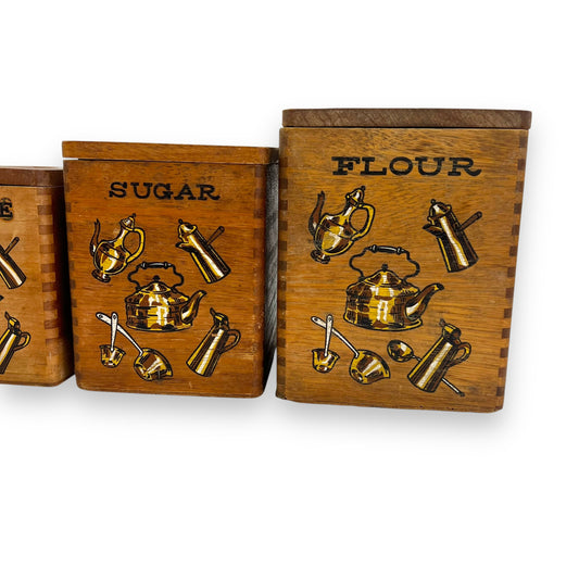 Wooden Kitchen Canister Set - Tea, Coffee, Sugar, Flour
