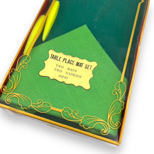 Vintage Green Table Place Mat and Napkin Set with Cocktail Forks - Made in Japan - Unused in Original Box