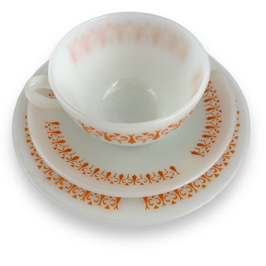 Termo-Rey Orange & white Cup & Plate Trio - Made in Brazil