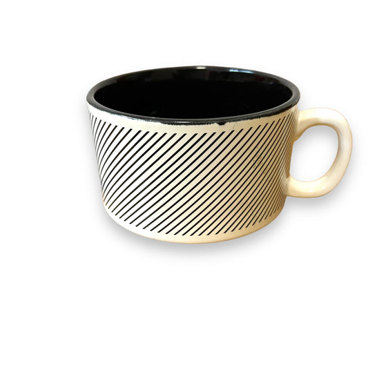 Set of 2 Black Stripe Soup Mugs - Made in Japan
