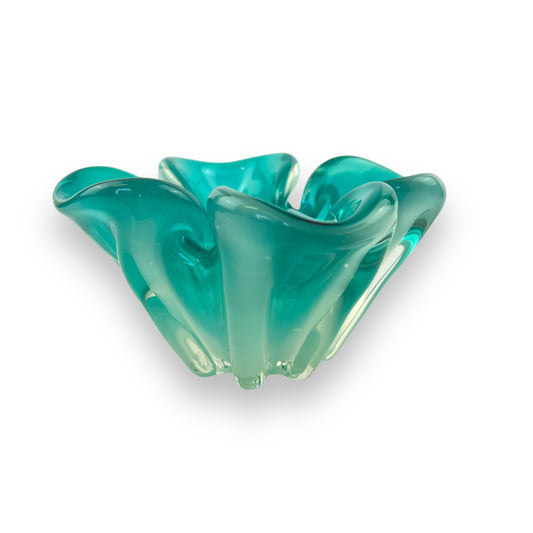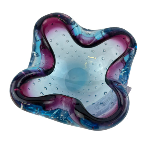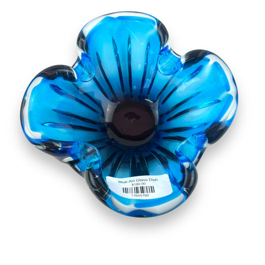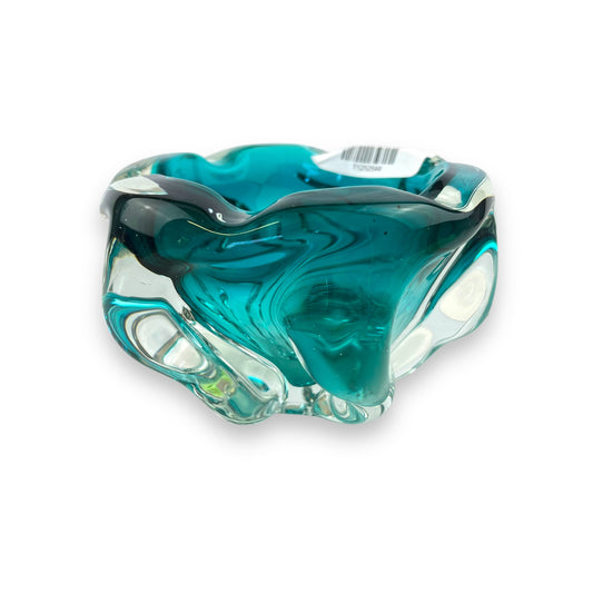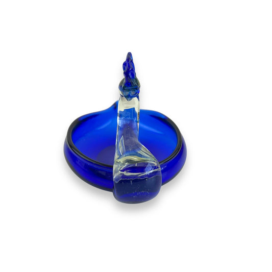 Hand Blown Vintage Blue Glass Art Peacock Swan Bird Trinket Bowl Dish Ashtray