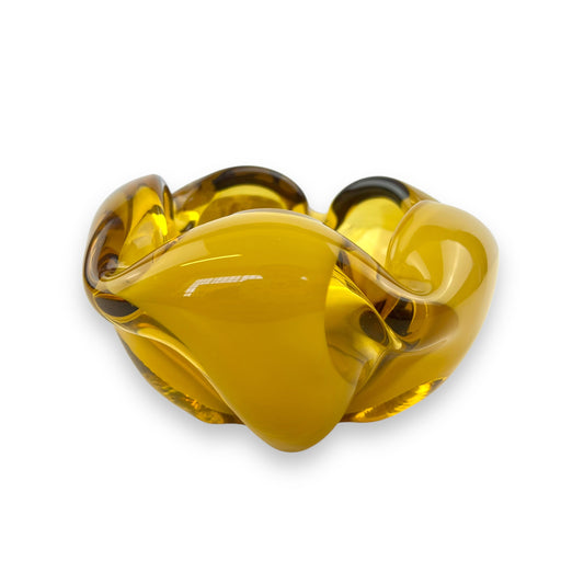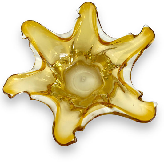 Amberina Honey Yellow 6 Point Glass Dish – Mid Century Art Glass (Made in Japan)