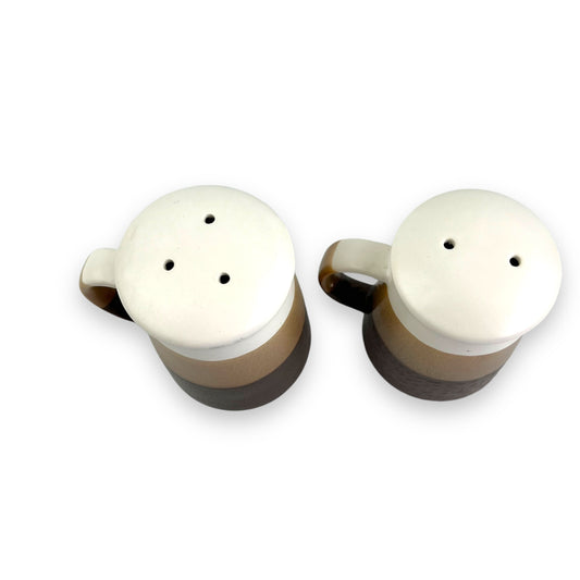 Brown & white stripe Salt & Pepper Shaker set with handles