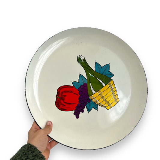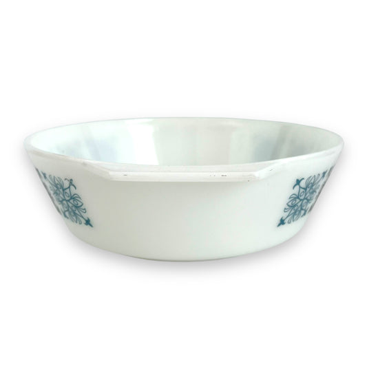 JAJ Milk glass baking dish with Blue & black retro pattern