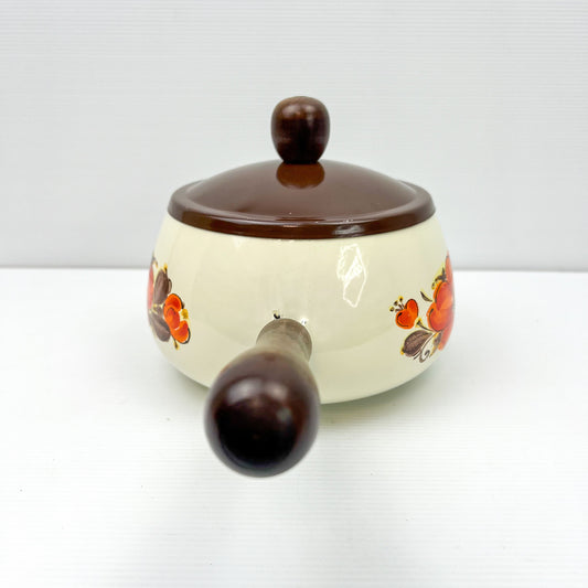 Retro Orange Flower Enamel Fondue Pot with wooden handle