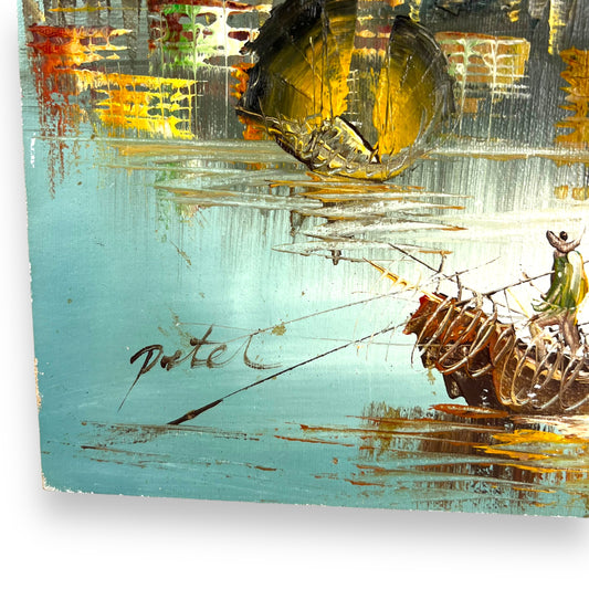 Asian Fishing Boat Artwork signed Pete C
