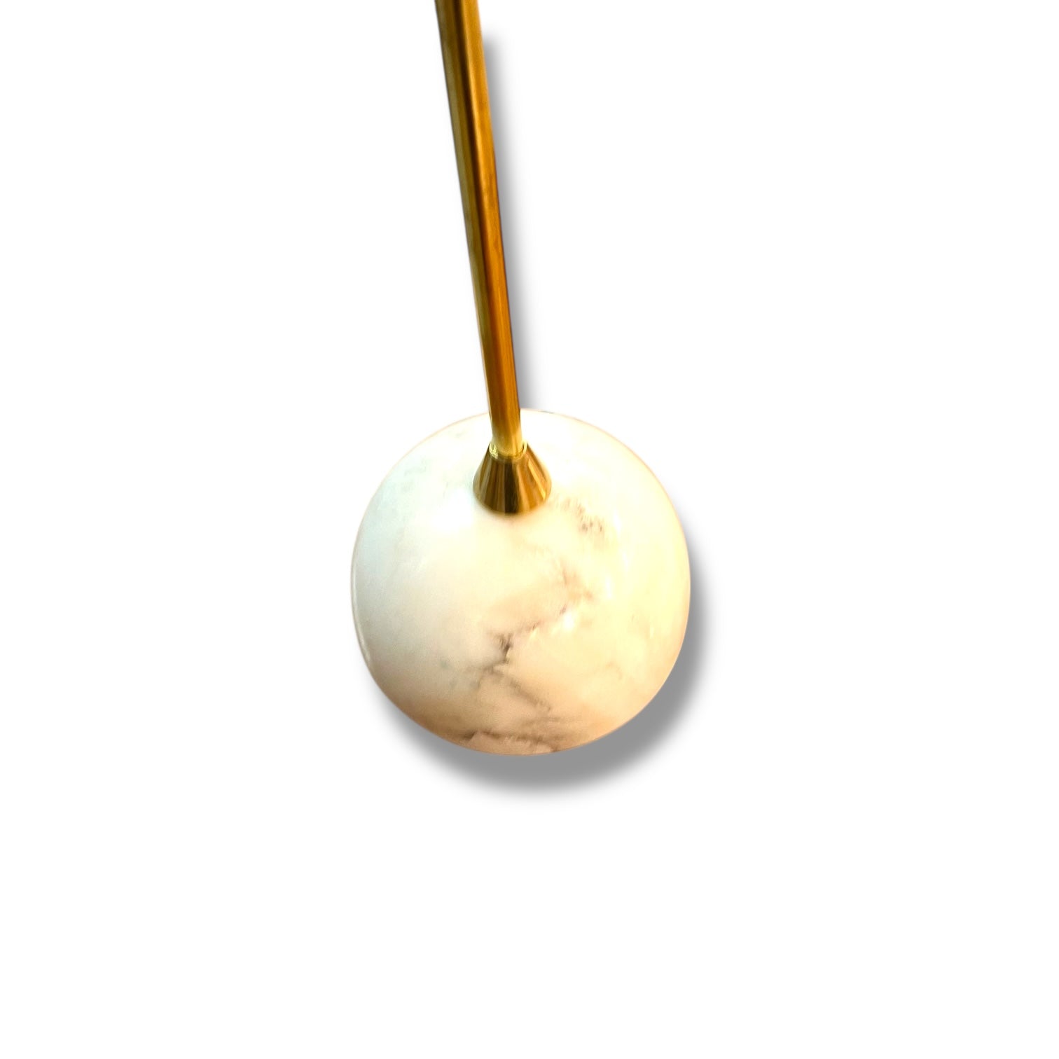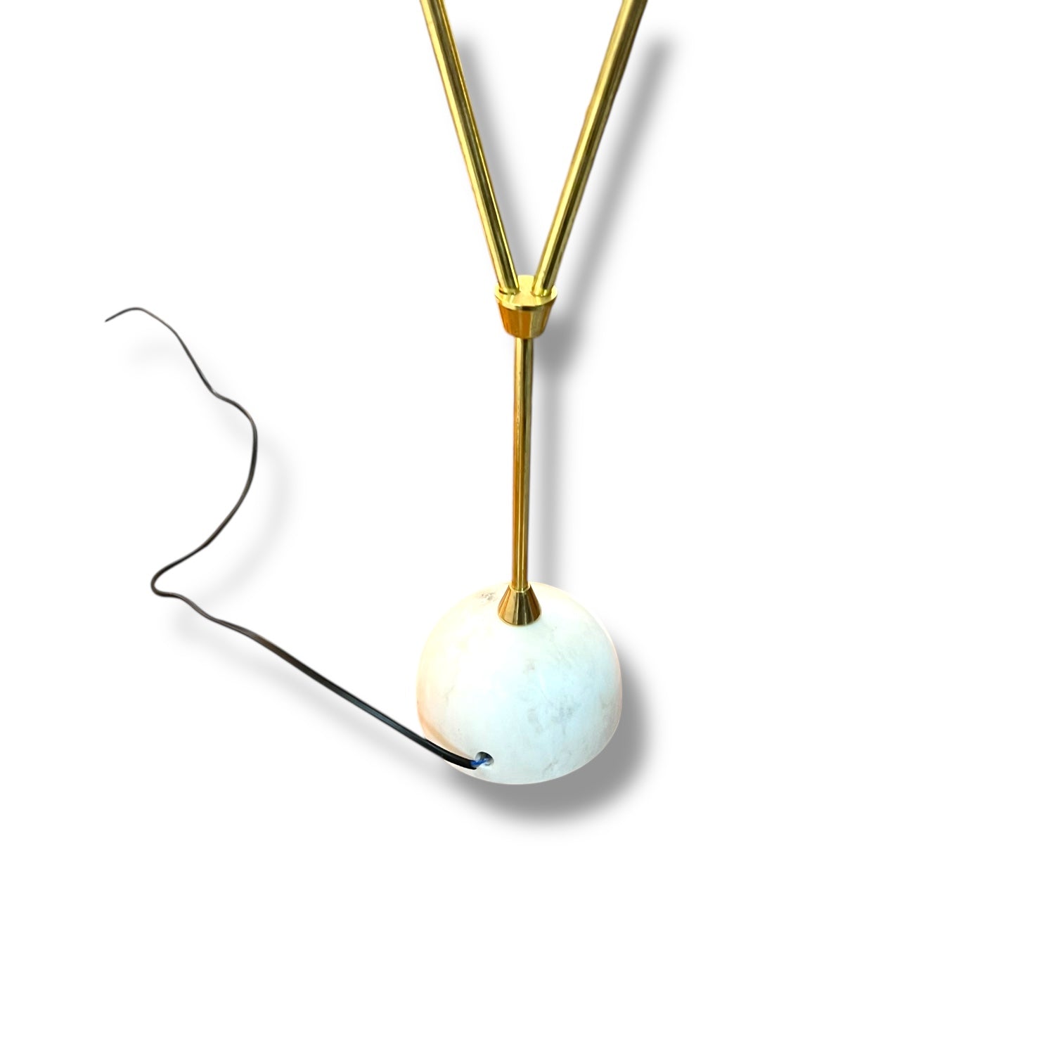 This sculptural piece embodies classic 1950s Italian design — clean lines, mixed materials, and space-age flair reminiscent of Stilnovo and Arredoluce lighting.