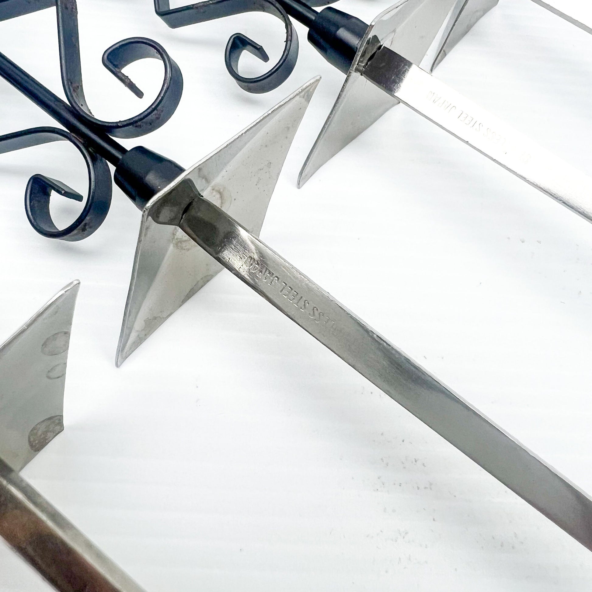 Black ornate handle retro fondue fork spikes set of 6 - made in Japan