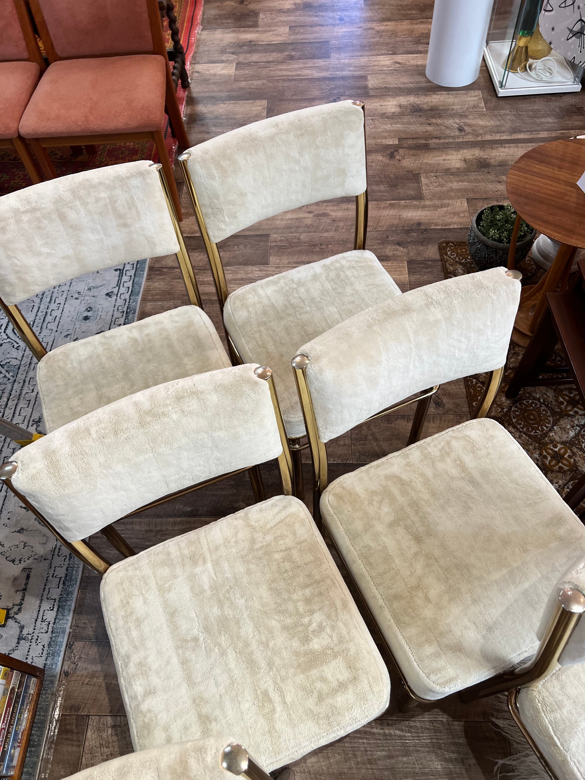 - Six brass-framed chairs