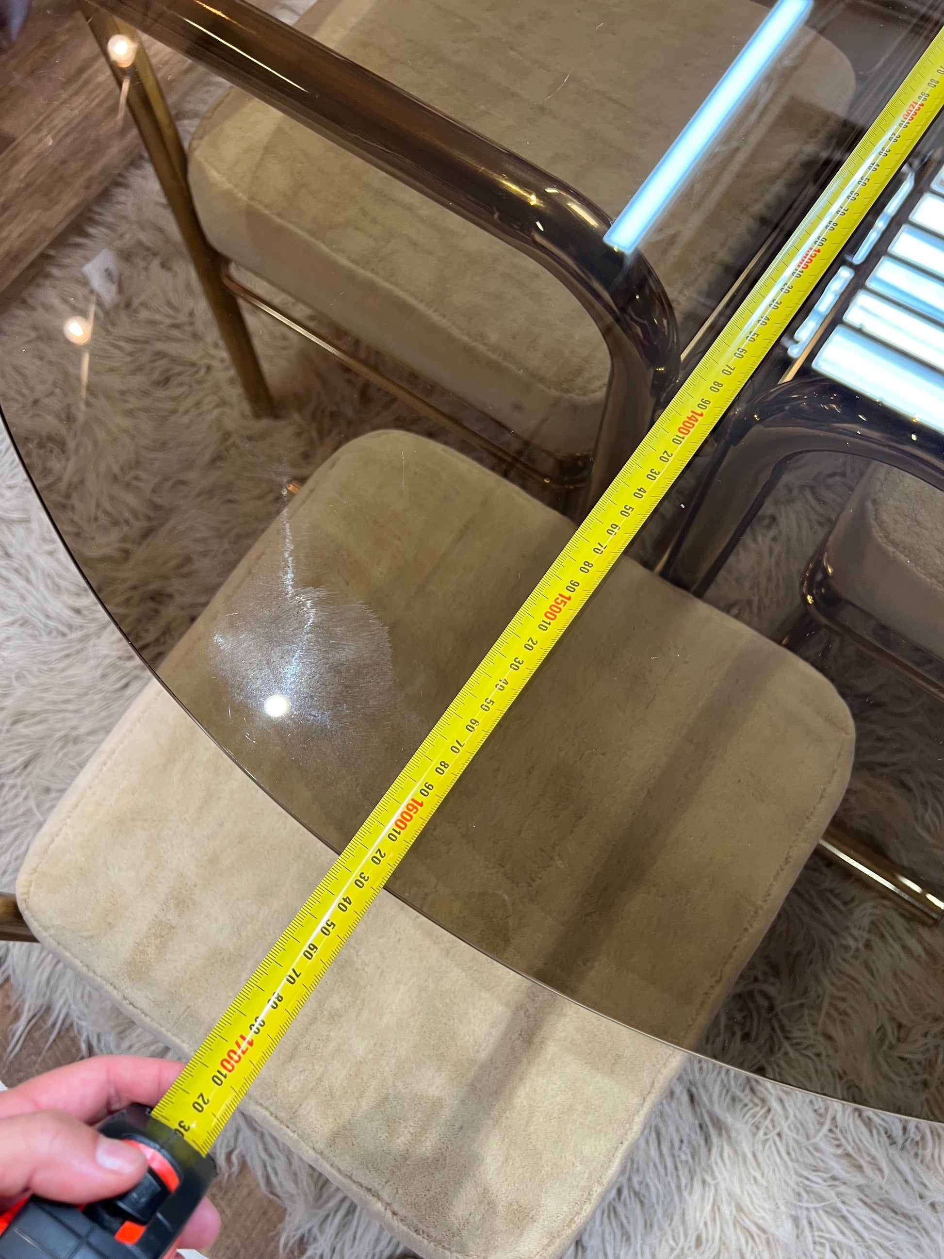 - Smoked glass tabletop