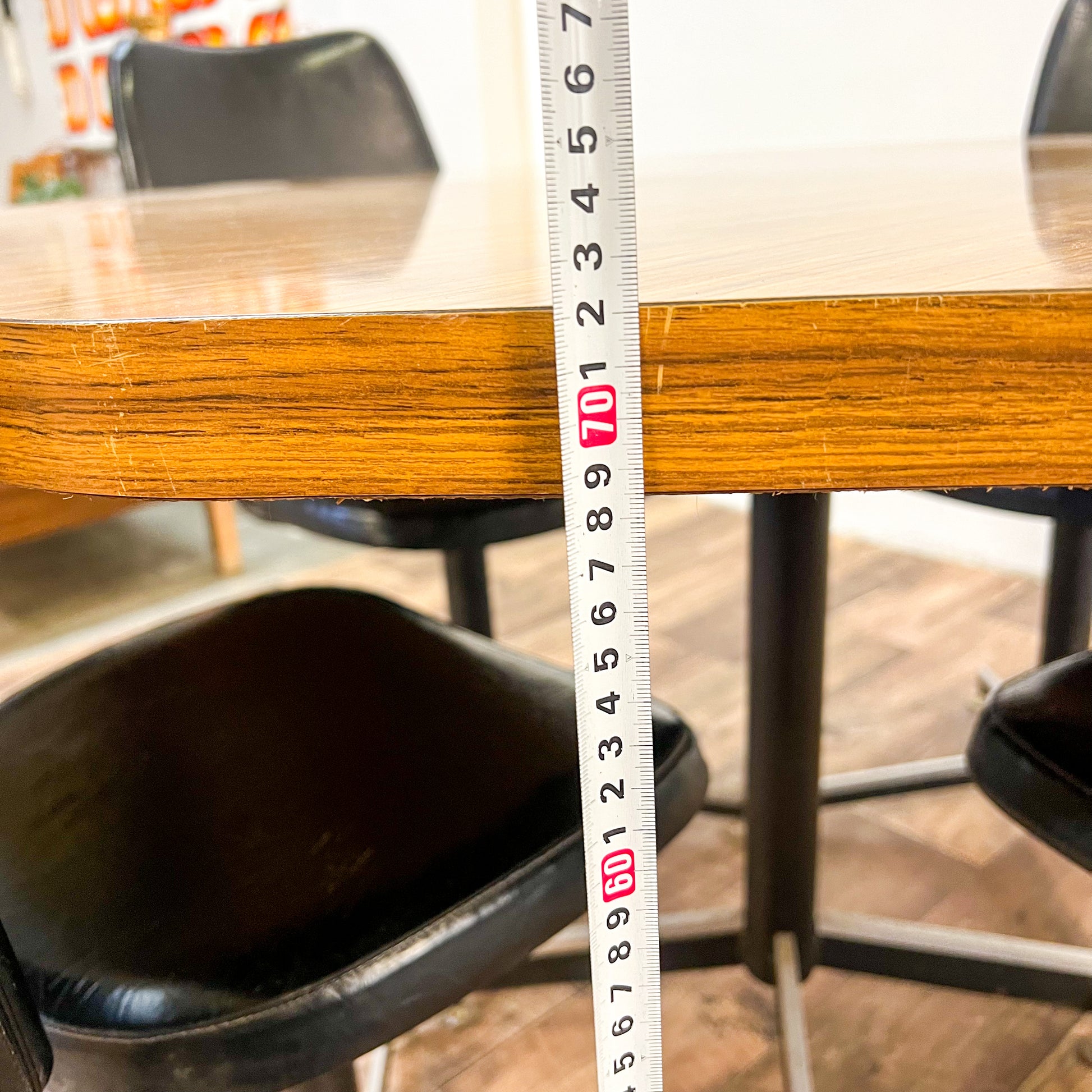 Experience the vintage charm and modern functionality of our Brown Laminate Octagon Dining Table and 4 Black swivel dining chairs! This stylish set will elevate your dining space with its retro design and sleek black chairs that swivel for added convenience. Perfect for entertaining guests or enjoying family meals, this table and chairs will become a beloved addition to your home. Don't miss out on this unique and timeless dining set!