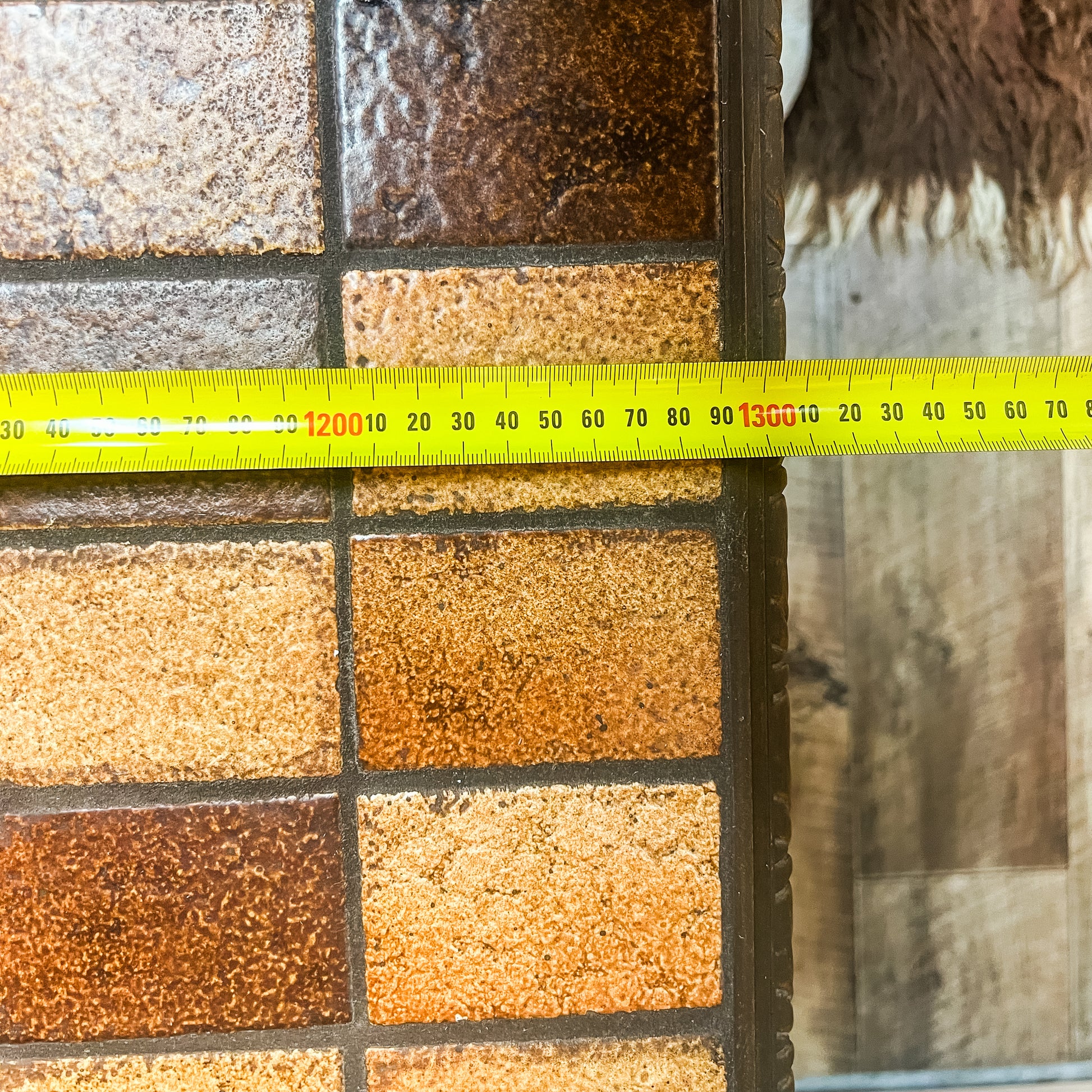 The warm earthy tones of the tiles create a rich, textured surface that’s both practical and visually striking — perfect for everyday use while adding character and depth to a living space. The ornate timber base adds a classic European or rustic feel, making this piece ideal for vintage, eclectic, farmhouse or layered interiors.