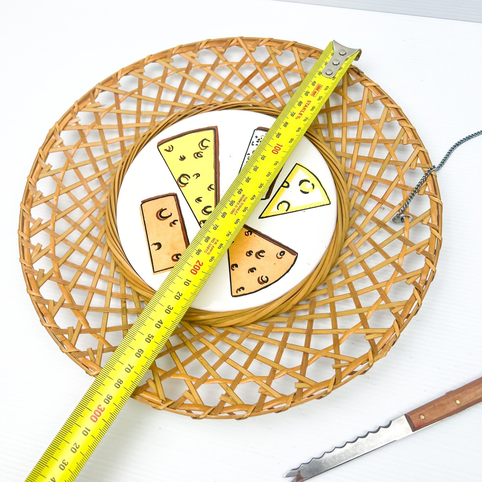 Cane cheese plate with cheese tile and knife