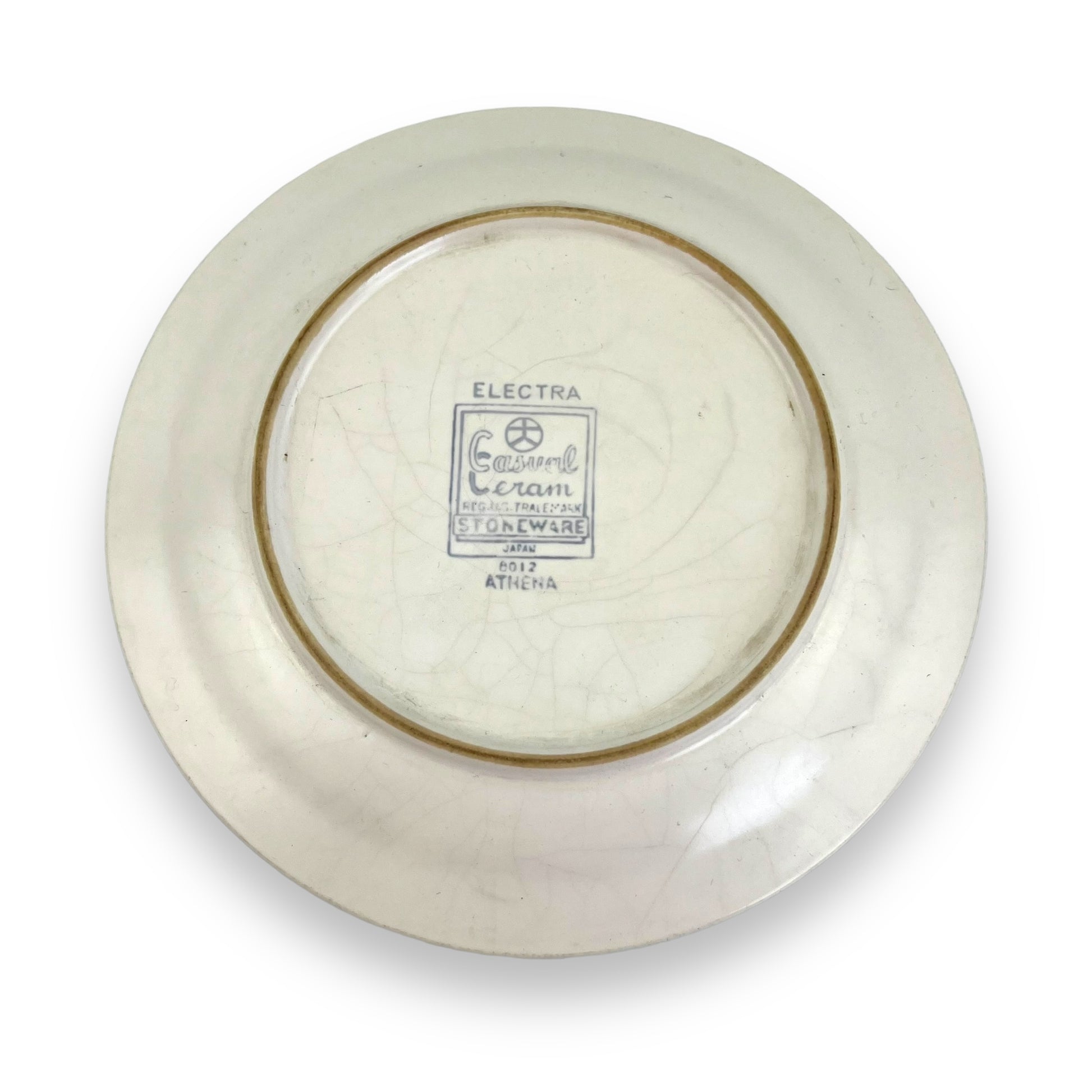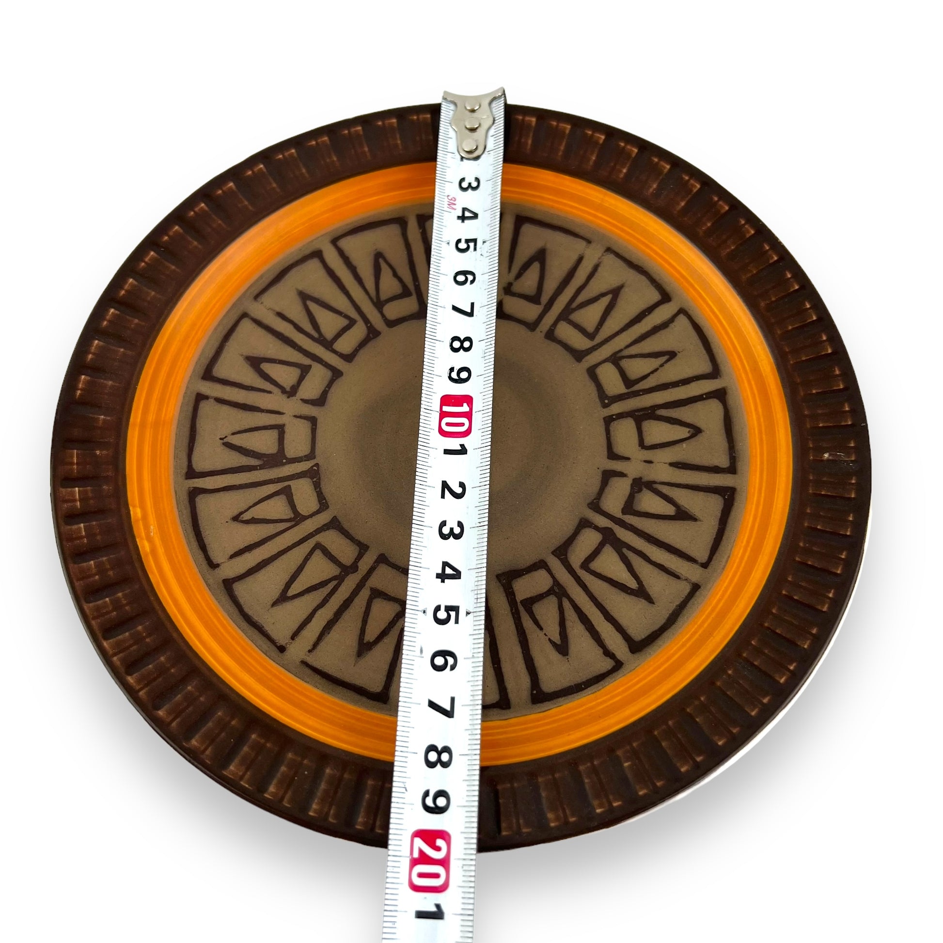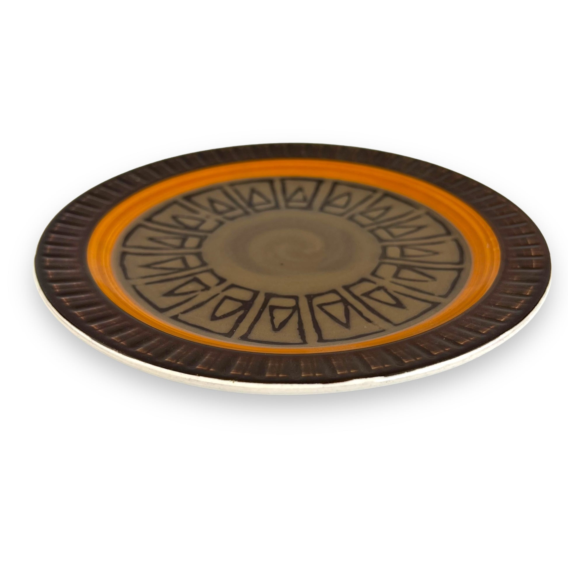 The Casual Ceram Athena design Side Plate features a charming brown and orange retro pattern, made from finely crafted stoneware in Japan.