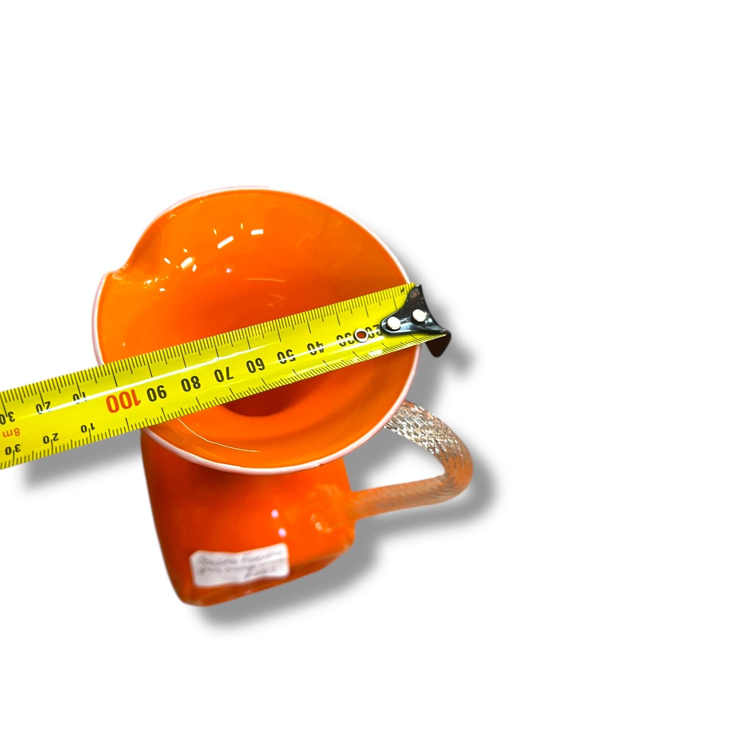 Stunning vintage Italian art glass ewer by Palina Fiorentina, made in Empoli, Italy. This striking mid-century piece features a bold opaque orange body with a textured basket-weave pattern and an elegant clear twisted glass handle.