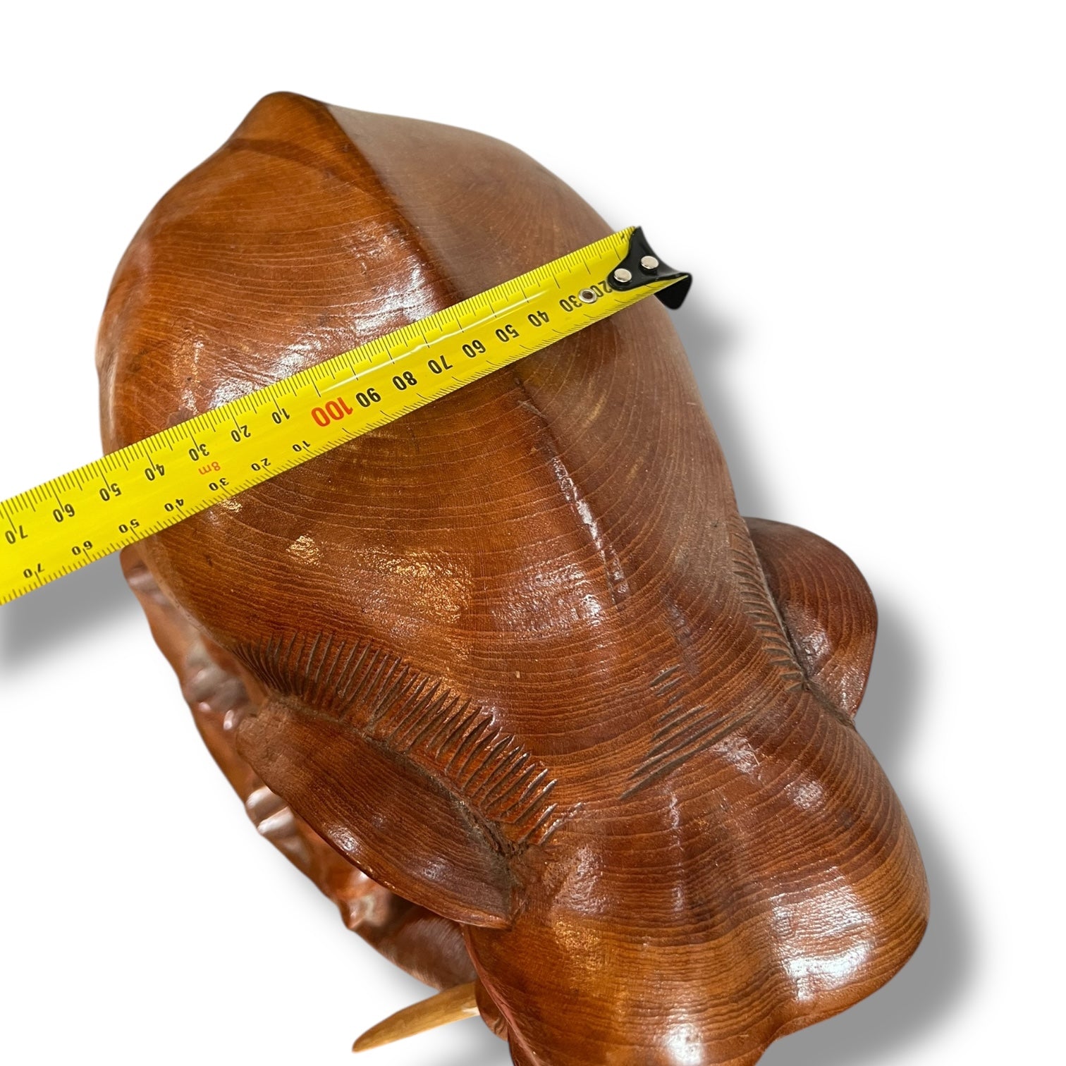 A stunning large hand-carved wooden sculpture depicting a mother elephant and her calf walking together. Expertly crafted from solid timber, this piece showcases incredible detail in the carving — from the lifelike texture of the skin to the expressive faces and natural tusk accents.