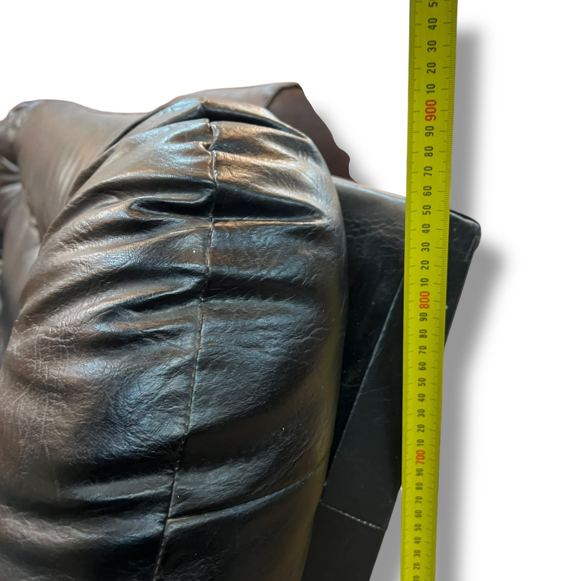 The durable black vinyl upholstery gives it a bold, classic look while being easy to maintain. Perfect for a living room, office, or vintage lounge setup.