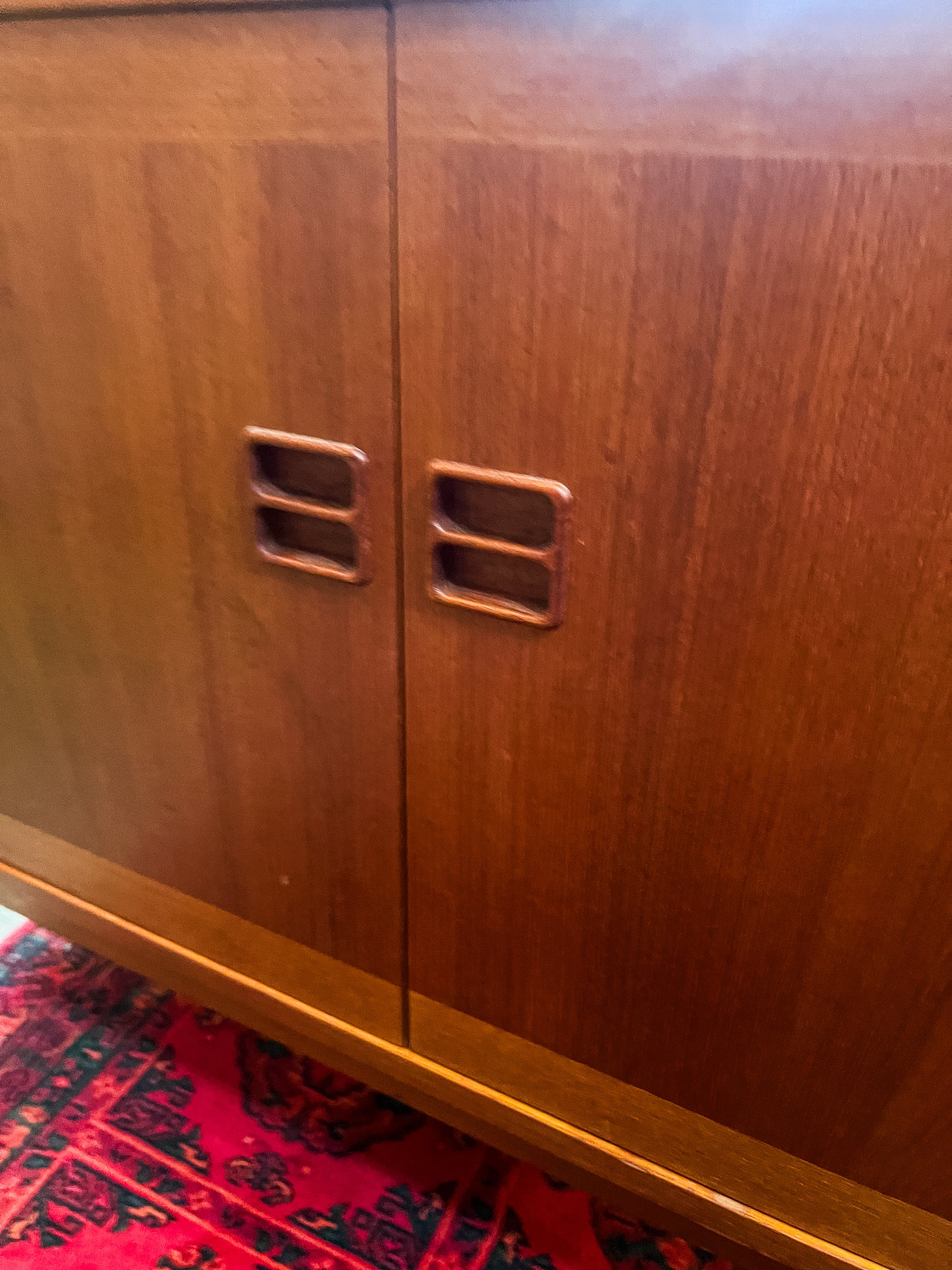 This stunning mid-century teak bookshelf and bar cabinet, designed by Carl Johansson for Bogaryds Furniture, captures the clean Scandinavian lines and warm wood tones of the 1960s/70s. Featuring two upper cabinet doors with lockable storage, an open central display section, and a spacious lower cabinet with distinctive recessed handles, this piece offers both function and timeless style. Perfect as a drinks cabinet, display unit, or for extra storage in a living or dining space.