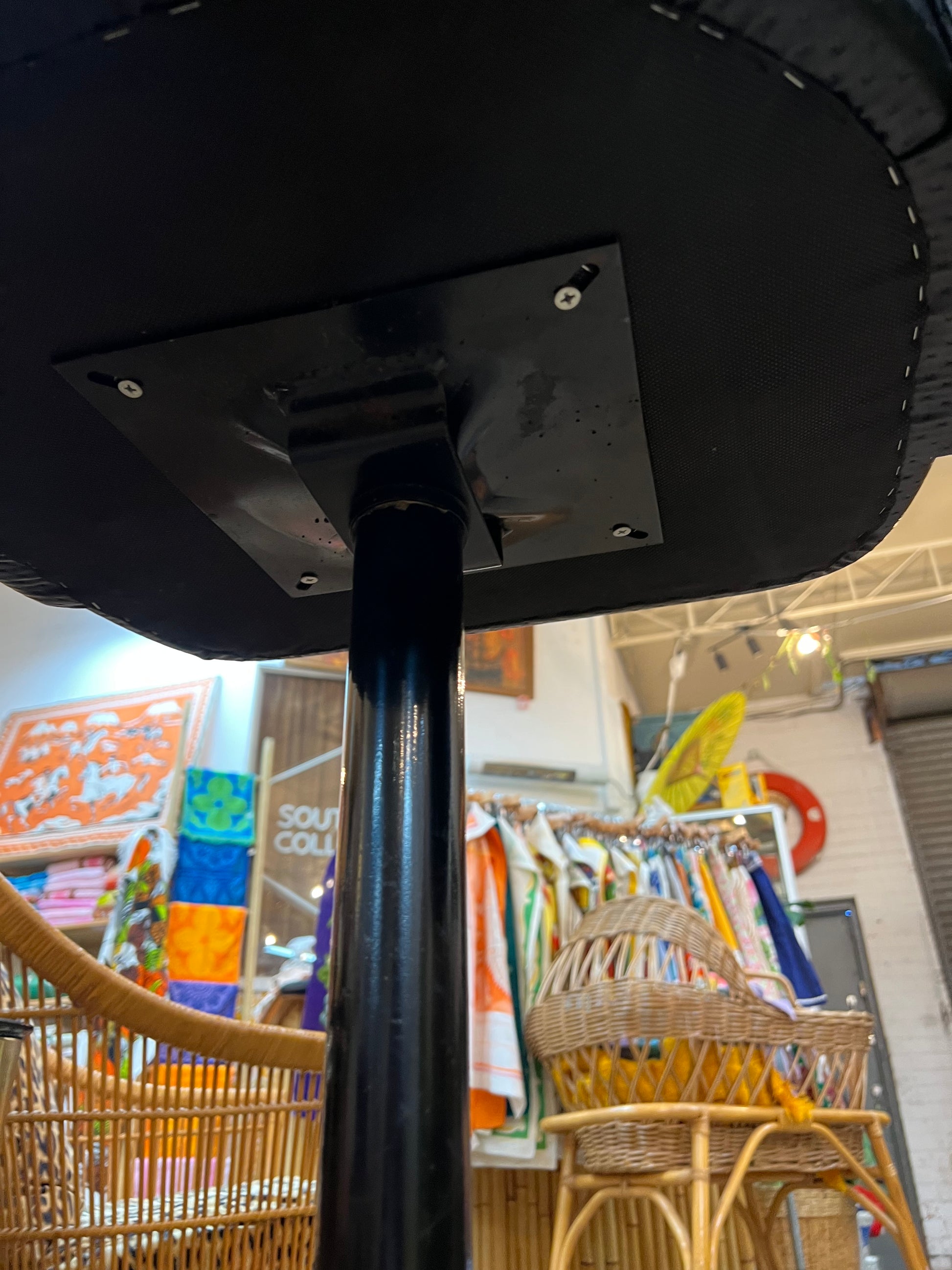 Featuring a sleek curved tub-style seat and textured black upholstery, these stools are the perfect mix of retro cool + practical comfort. Finished with a sturdy black metal pedestal base and circular footrest, they’re ideal for a breakfast bar, home bar setup or even a funky studio space.