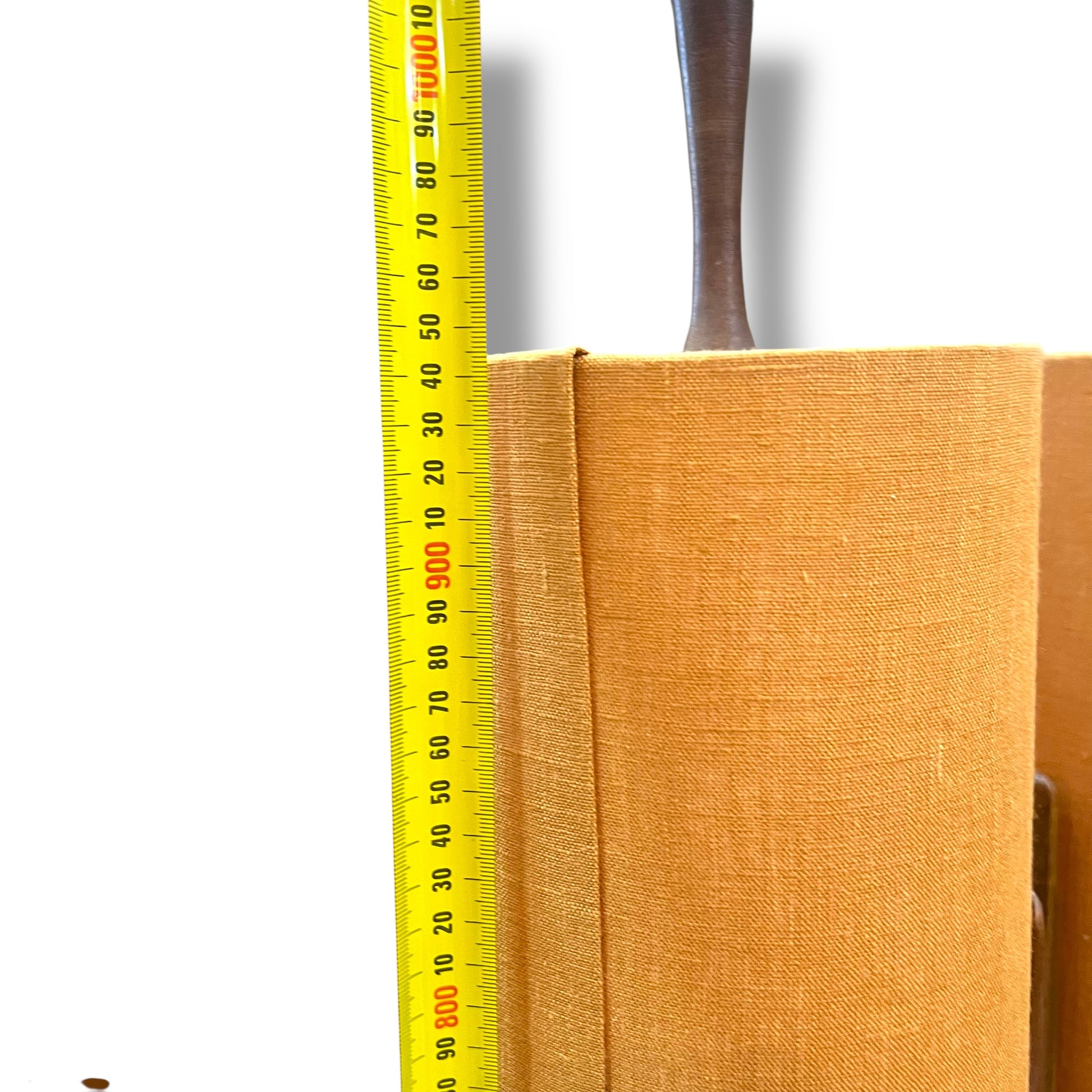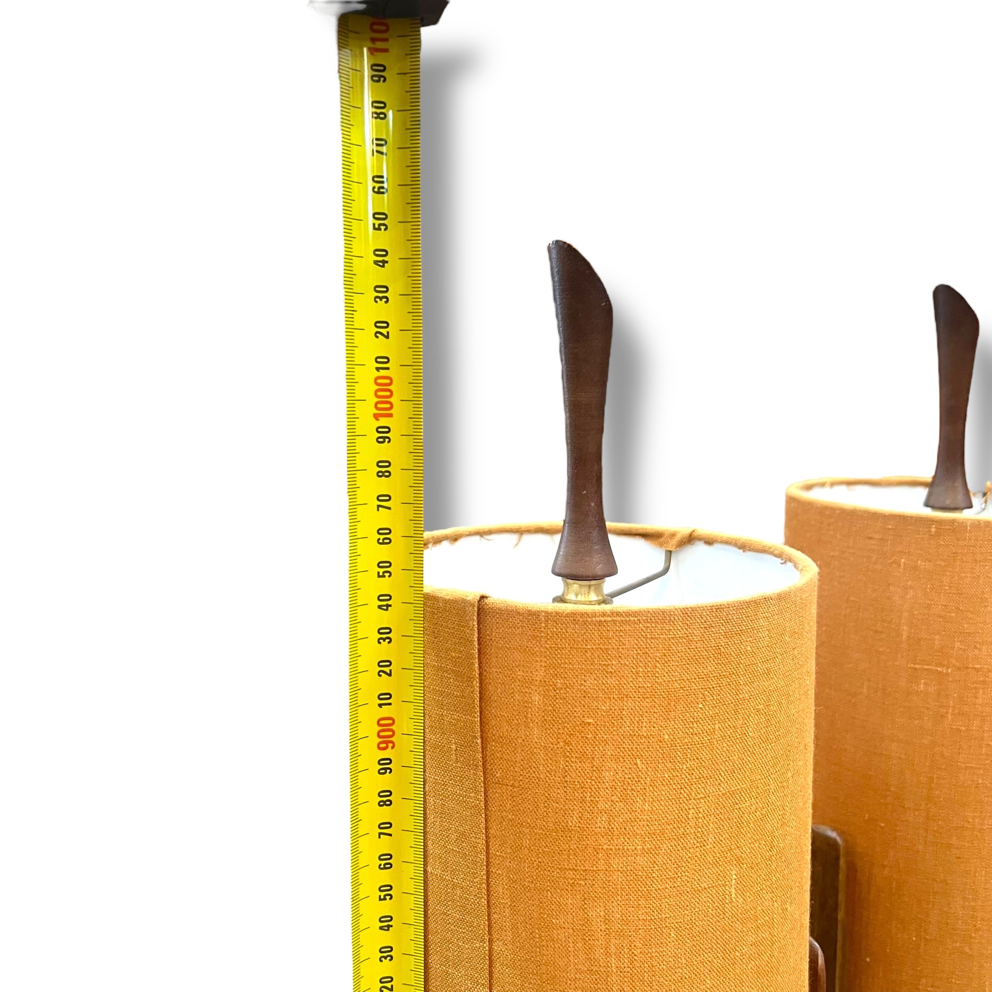 - Materials: Solid walnut, brass hardware, original woven fabric shades