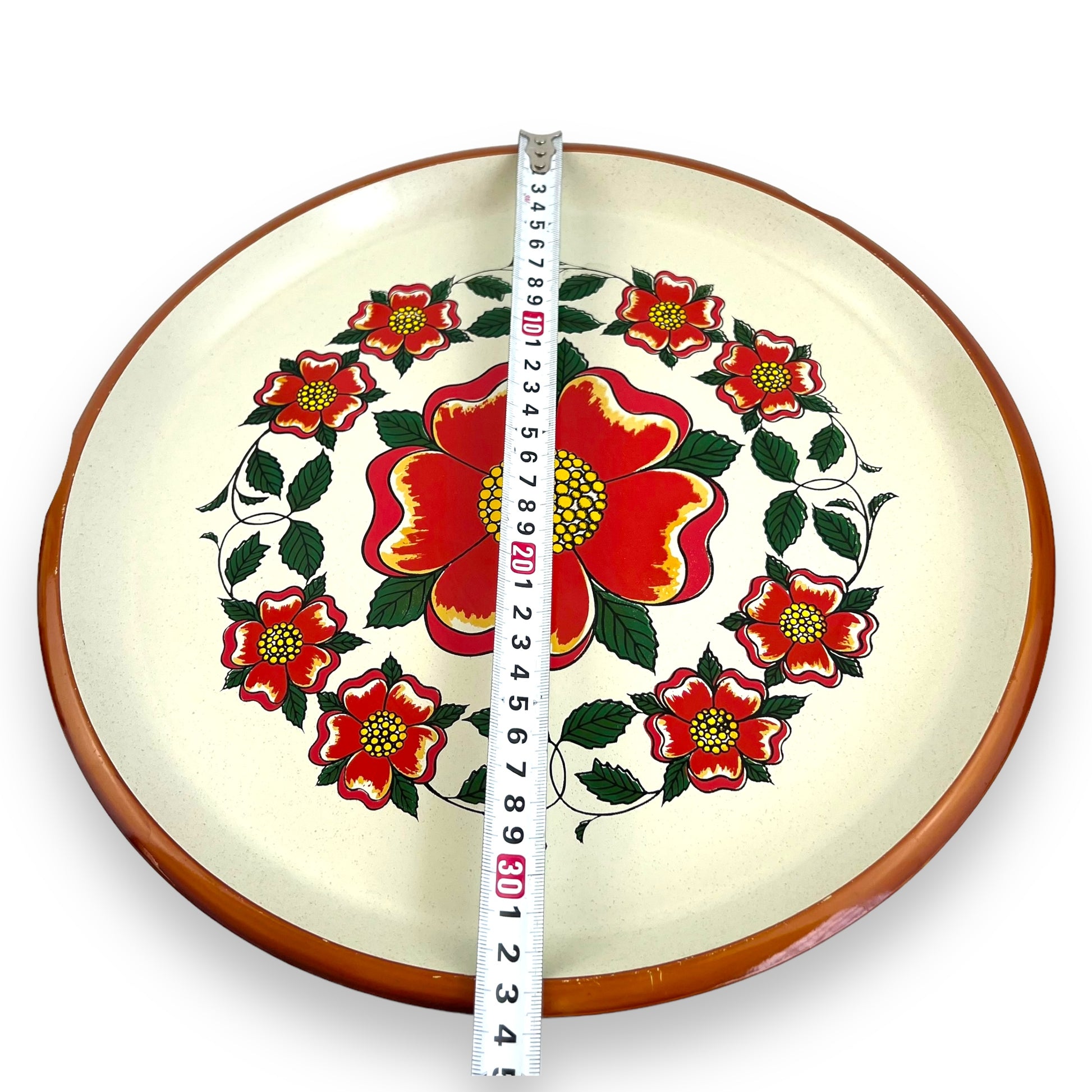 Constructed from high-quality plastic and featuring a beautiful red flower design, this round tray was expertly crafted in Japan. Take note, as two minor chips may be present along the edge of the tray, as shown in the attached photos.