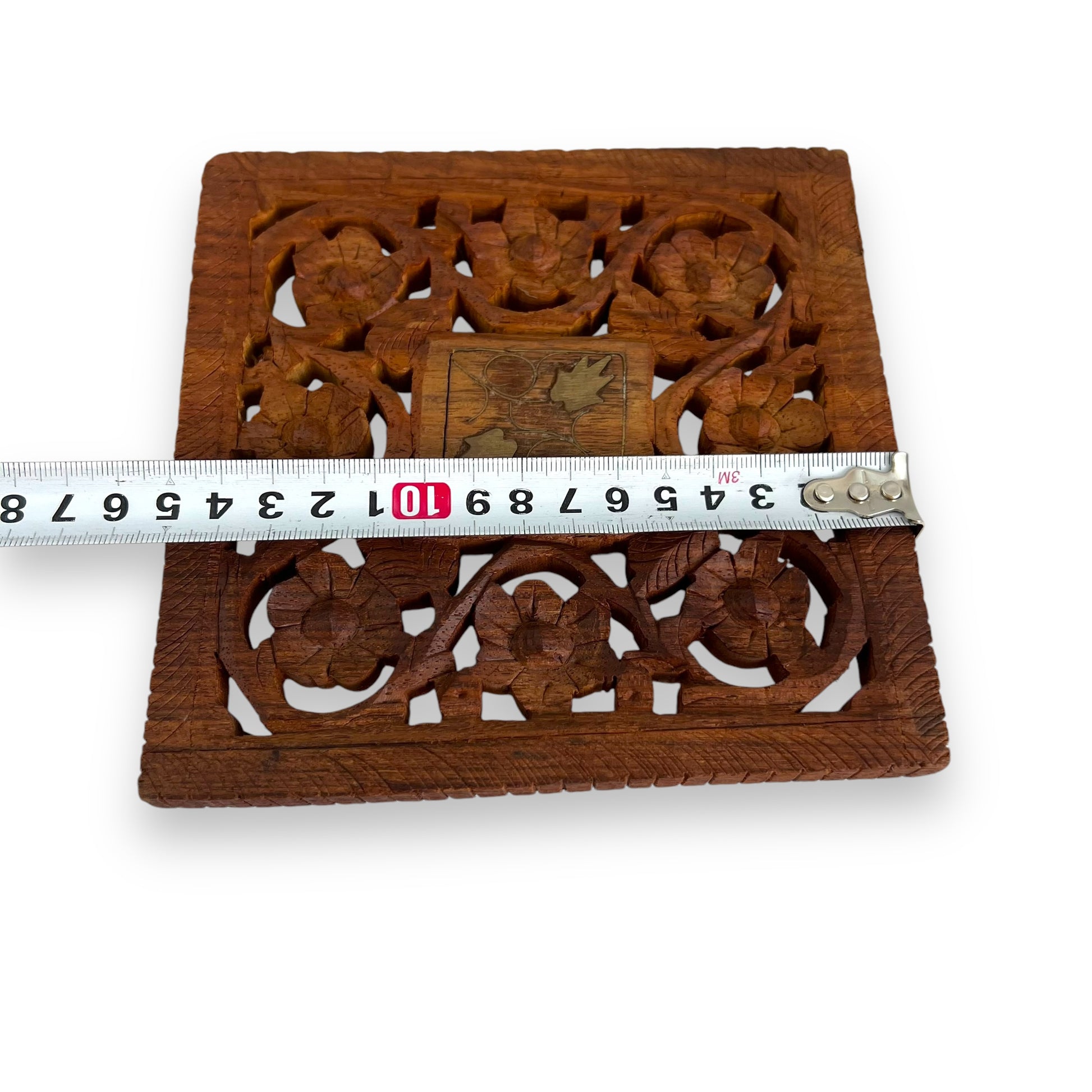 This Wooden Carved Trivet is expertly crafted and designed to bring both functionality and elegance to your kitchen. Its intricate carving and durable wood material make it a practical and stylish addition to your kitchenware collection. Made with high-quality materials, it is sure to last for years to come.
