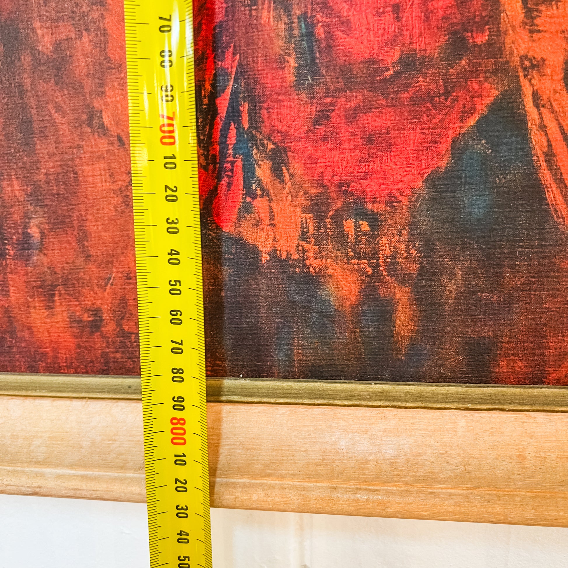 Presented in a timber frame with a slim gold inner trim, this piece has strong visual impact and suits both modern and vintage interiors. The textured print surface enhances the painterly feel of the work while remaining a decorative art print rather than an original painting.