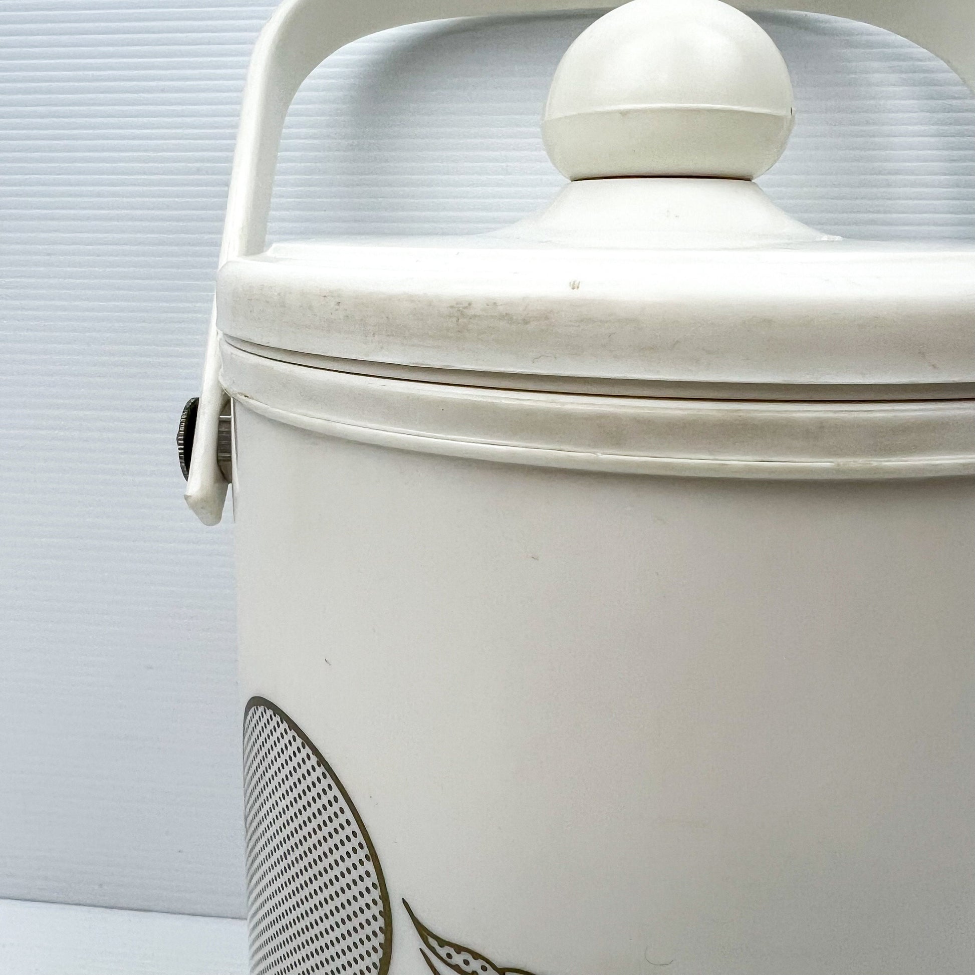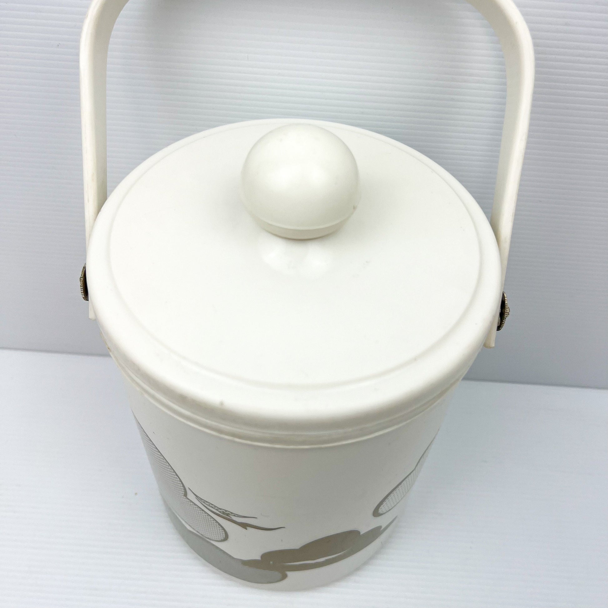 White and Gold Plastic Icd Bucket with clouds and birds artwork