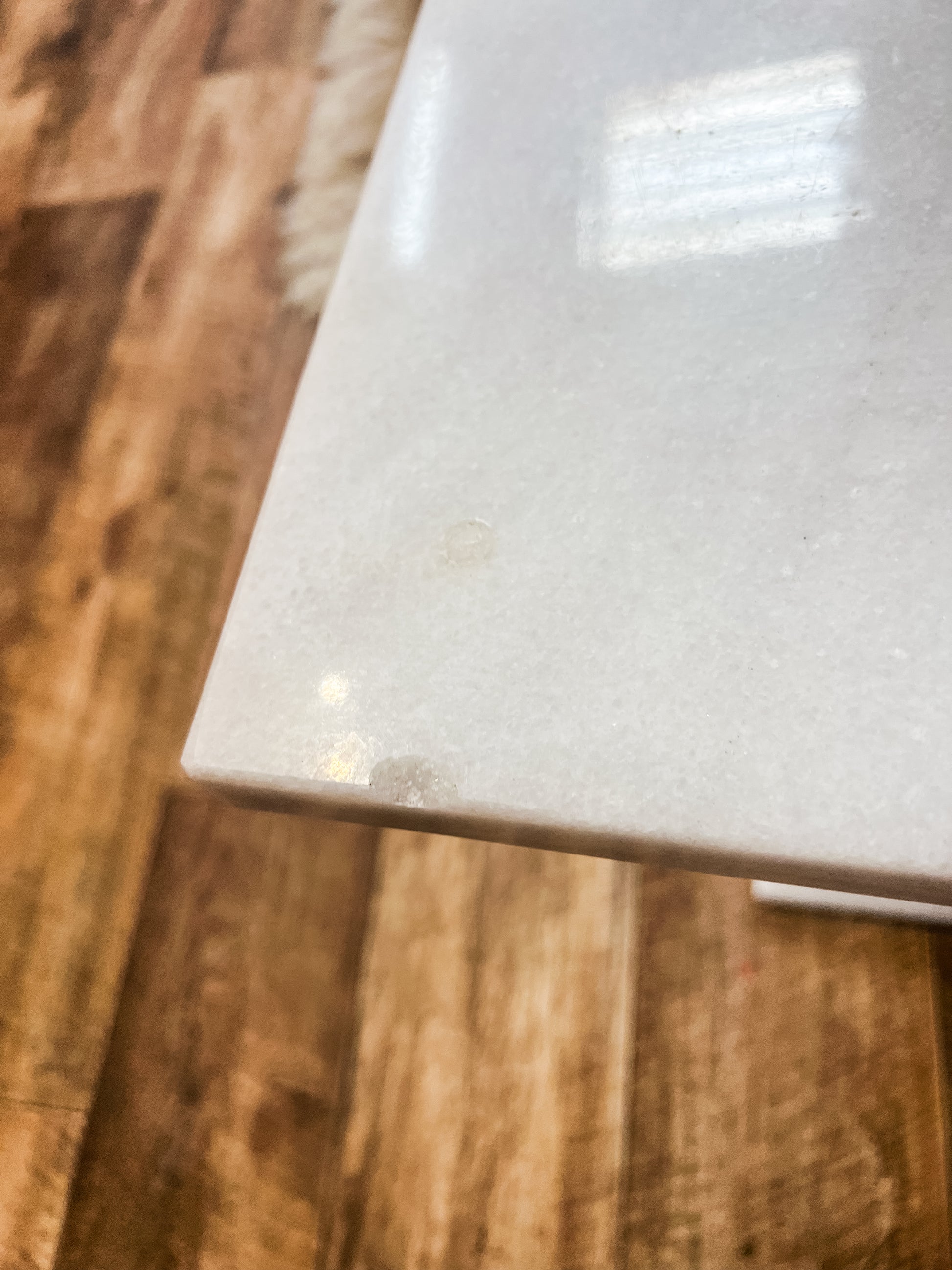 Condition: Good vintage condition overall. There are some small surface marks and minor edge nibbles to the stone, along with natural veining and inclusions inherent to the stone. These do not affect the stability or use of the table and are consistent with age and material. Please refer to photos for detail.